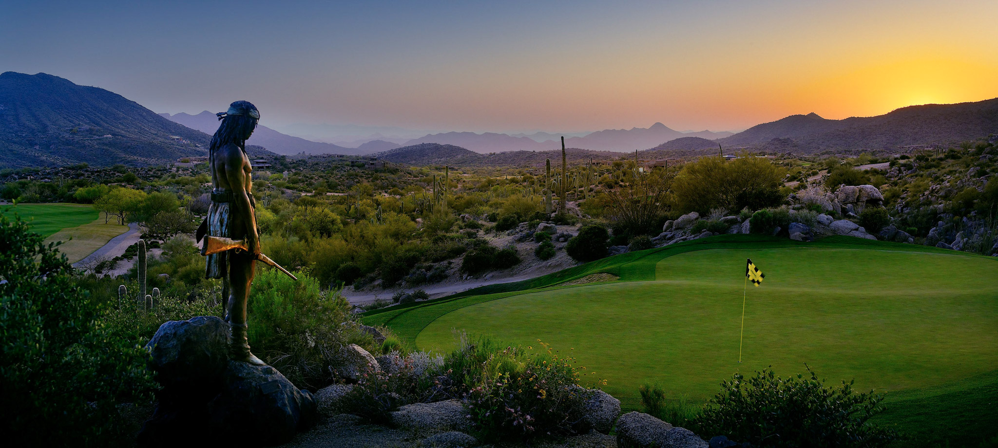 Servicing both the Cochise and Geronimo Golf Courses, the 52,000-square-foot Cochise/Geronimo Clubhouse is a masterpiece of Frank Lloyd Wright-inspired design, artfully blending historic Native American, desert, and contemporary architectural styles. The dramatic structure houses our renowned Western art collection, the luxurious men’s and women’s locker rooms, the Concierge and Golf Operations offices, an elaborate retail boutique and pro shop, and a practice facility consisting of two dedicated short game areas, a two-sided range, and multiple putting greens.